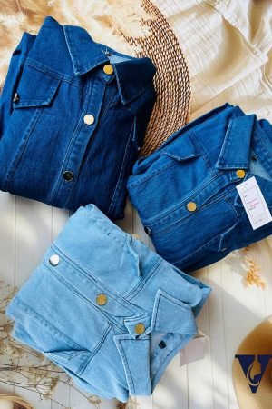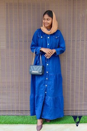 Premium Button-Down Denim Gown with Belt – Feeding Friendly & Modest Western Wear