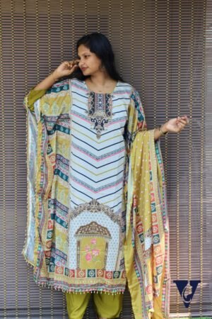 3 Pc Kaftan Set with Inner & Dupatta